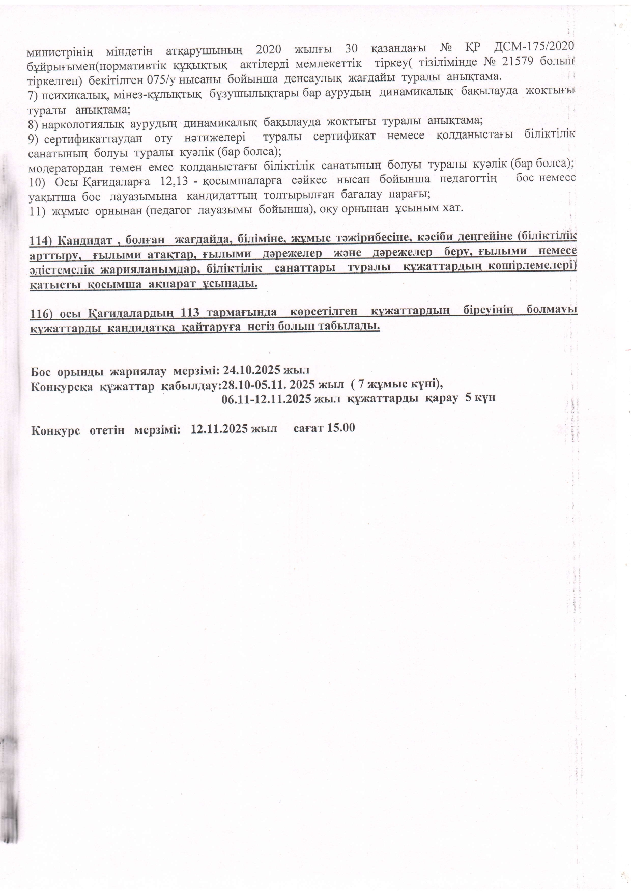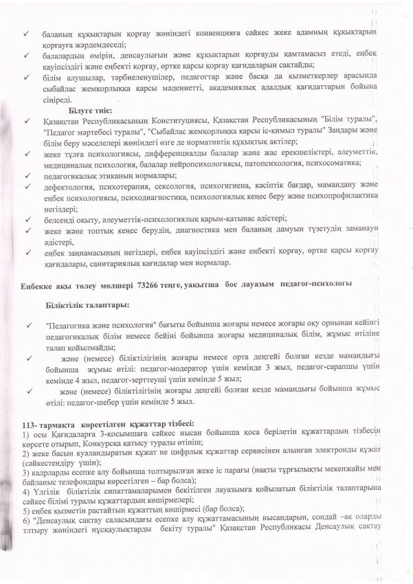 Уақытша бос тұрған лауазымға конкурс (педагог-психолог)